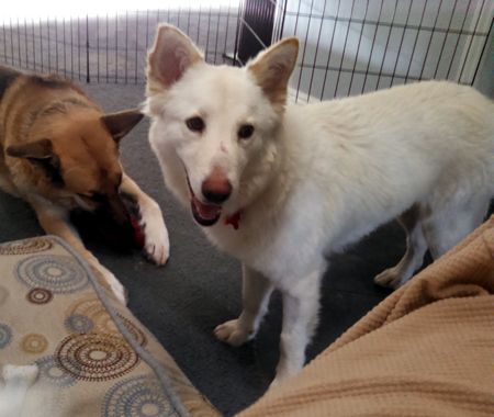 Venus is a small German Shepherd who weights approximately 40-45 pounds. She is closer to 1 year old than 2. She had been living in Perris - on her own - with residents feeding her until she was brought to Coastal in September. Venus is living with a foster family that includes two adult German Shepherds, a young German Shepherd mix dog, and a puppy. Venus gets along with all of the dogs and we recommend that her forever home should have at least one other dog. She would probably be fine with cats and older children.