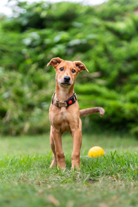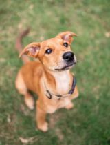 Meet Vida from our "V litter"! Vida is part of a litter of 12 puppies that were found in a field in the city of Perris. There were several stray dogs in the area but no obvious mom dog. The puppies were rescued by Good Samaritans who took them in, cleaned and fed them, and did their best to find good homes for them. They were able to place some of the puppies before asking Coastal GSR for help finding homes for the rest. We took five of the siblings.