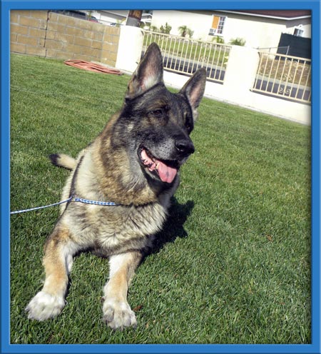 Wanderer was a loved family dog until his family fell on hard times. Wanderer has been thru obedience training and knows his commands in his mother tongue (German). He loves to play and is often found carrying his favorite toy around waiting for a game of fetch or tag!