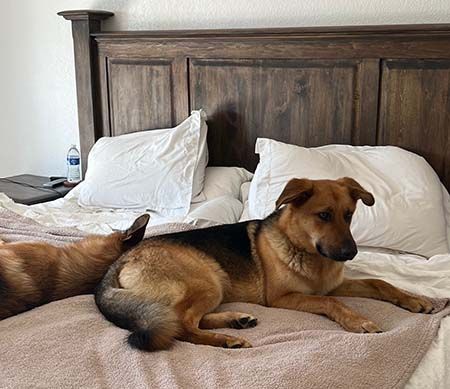 Willa is a German Shepherd puppy around 12-15 month old who was homeless and left to fend for herself. When she first joined her foster home, she was starving and skittish, but also full of love, enjoyed giving kisses, loved snuggles, and allowed being handled by her new people.