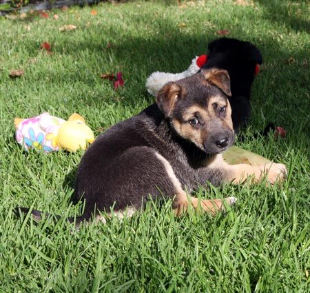 Xenia is an stunning bi color girl and Xassko is a classic black and tan boy. They enjoy spending time being petted and played with by their foster family. They also enjoy playing with the big dogs in their foster home as well as each other. These two easy going puppies will be ready to go to their homes the last week of November.