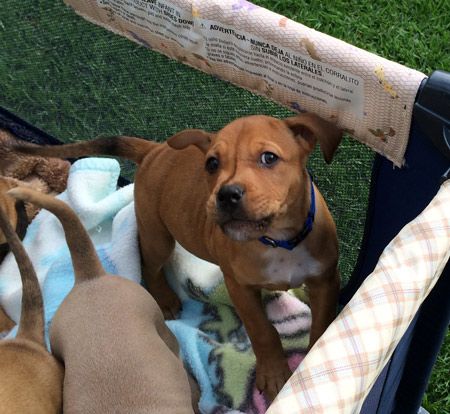 Our Y litter was born to a pair of Pit mix (possibly Boxer) parents that were rescued from the Redlands Shelter. Typical Friday the 13th luck, most of the puppies were delivered by c-section and mom was just to young to step up to the demands of raising a big litter. These adorable puppies have grown up in their foster home with the help of their GSD foster moms, so they are very well socialized with dogs and people.