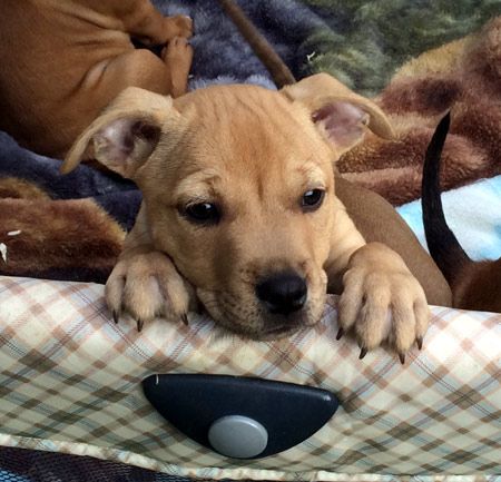 Our Y litter was born to a pair of Pit mix (possibly Boxer) parents that were rescued from the Redlands Shelter. Typical Friday the 13th luck, most of the puppies were delivered by c-section and mom was just to young to step up to the demands of raising a big litter. These adorable puppies have grown up in their foster home with the help of their GSD foster moms, so they are very well socialized with dogs and people.
