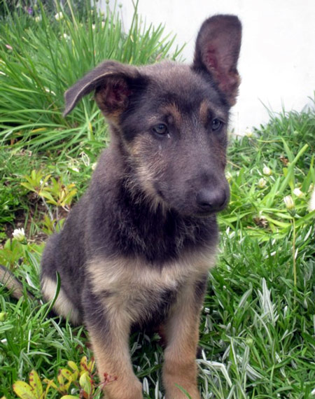 Zoey has unusual coloring. She is considered a "blue" shepherd. It is a genetic dilute meaning it dilutes all the black pigment of a dog and their eyes are usually lighter as well. So Zoey is considered "blue and tan" and her eyes are blue-gray. She's gorgeous.