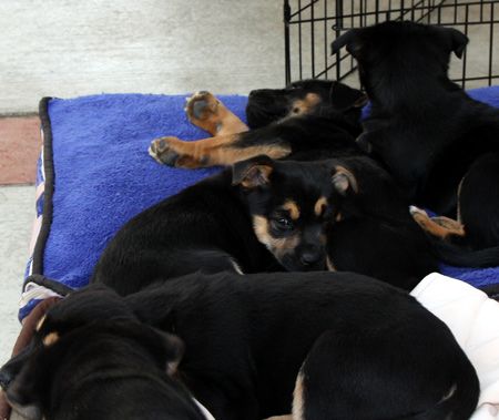 Welcome our Z litter, 2 boys & 5 girls, now available for adoption. These adorable black and tan puppies were rescued with their mom Zella from a high kill shelter when they were just a week old. They have been raised in a foster home and have just blossomed. These friendly pups love people and other animals. They are very out going and will make wonderful additions to their new families.