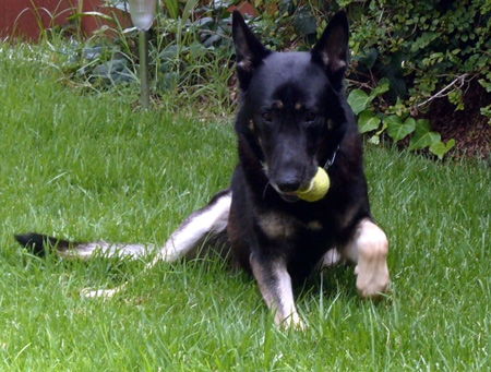 Zulu, what a great guy! He's a great fit in any family, regardless how big or small. He's happy if he has food, a warm place to sleep, and a toy or bone to chew on. He's great with people and dogs, in fact, he loves both! He gets excited to see his four-legged friends and always wants to say hello. I've never seen a dog that can come up to the most dominate female and make friends--Zulu can! He's a playful guy that loves to chase his tennis ball. He is pretty obedient as well, excellent at sit, stay and come. His one downfall is that he chases cats, but in a playful manner. Nobody's perfect, right?