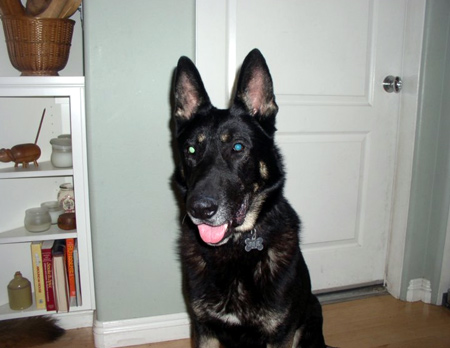 Zulu is a BIG (87 pounds) bi-color boy. Believe it or not, he is very skinny and needs to gain about 10-15 pounds. He gets along with everyone and would do well with another bossy dog. He knows how to shake and he walks well on a leash, but he needs basic obedience, as most dogs do. We estimate that Zulu is about 4-6 years old.