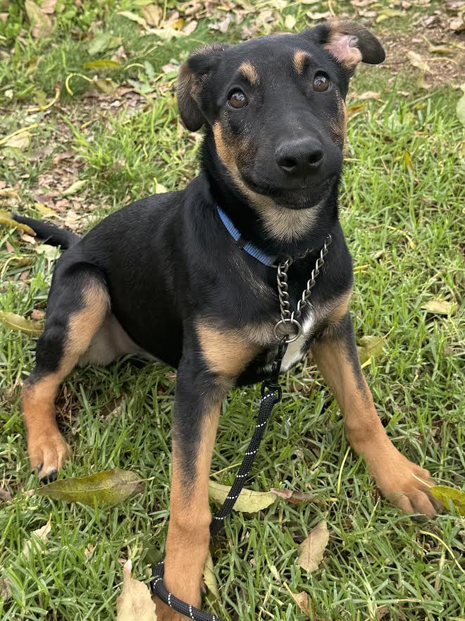 The six “E litter” puppies were found in a shelter drop box. They were very dirty but appeared to be surprisingly healthy. There were five boys: Echo, Easy, Elton, Ethan, and Everest, and one girl: Emma. They are 4 months old and weigh around 20-25 pounds.